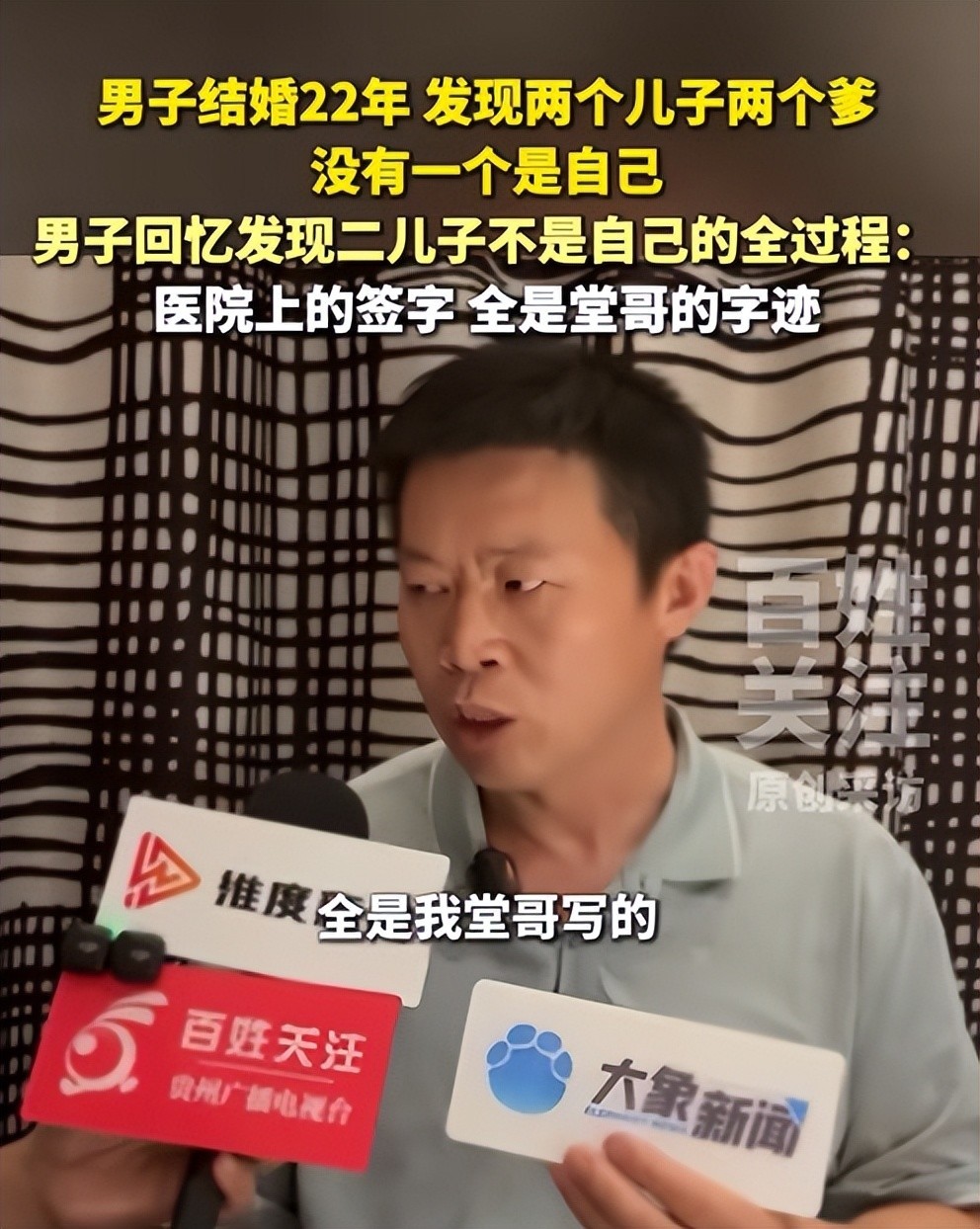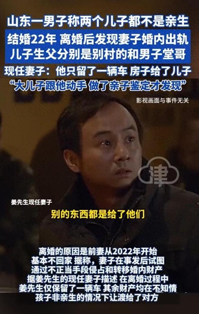 投降在生计中全球齐不可继承我方的另一半出轨,而来自山东的姜洪涛的遭受令大量网友悯恻,因为他的太太不单是出轨了,更紧迫的他养了几十年的孩子也不是他的。