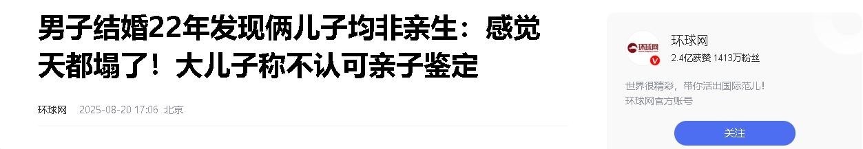环球网——须眉授室22年发现俩女儿均非亲生:嗅觉天齐塌了!大女儿称不认同亲子断然2025-08-20
