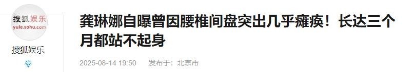 参考尊府:【1】搜狐文娱 2025-08-14 19:50 《龚琳娜自曝曾因腰椎间盘特等险些瘫痪!长达三个月王人站不起身》