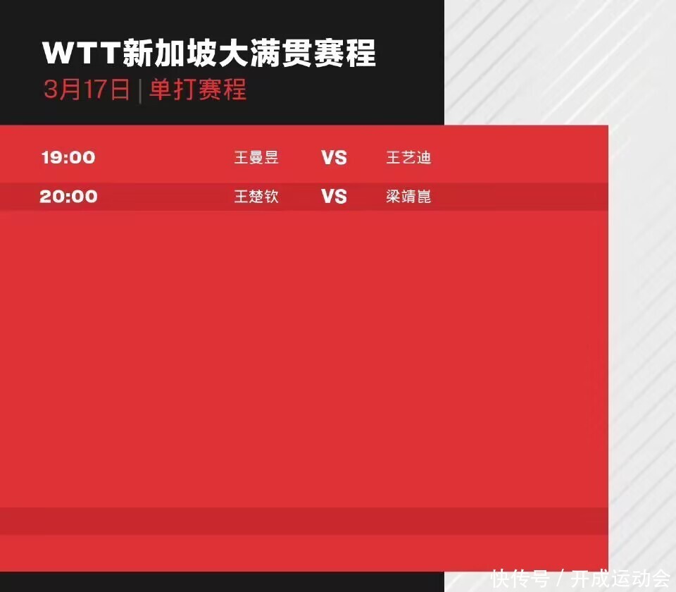 (二)3月17日20:00,WTT新加坡大满贯男单决赛:王楚钦VS梁靖崑!王楚钦、梁靖崑的行将之路,堪比励志之路!卓绝是梁靖崑,0-2过时,临了3-2逆转张本智和!对阵德国宿将波尔,梁靖崑相通给球迷“上强度”,临了4-3取胜!对阵林昀儒,梁靖崑终于皮紧了,以4-1取胜!王楚钦以4-1治服“国乒新劲敌”F勒布伦,赛后,王楚钦示意:勒布伦昆玉是咱们国乒当今最强敌手之一,他们时刻全面,卓绝难打,很有冲击力,况兼每一次比赛齐有变化。加油,王楚钦!加油,梁靖崑!天然,但愿国乒球迷感性不雅赛,拒却“饭圈当作”,谢谢!